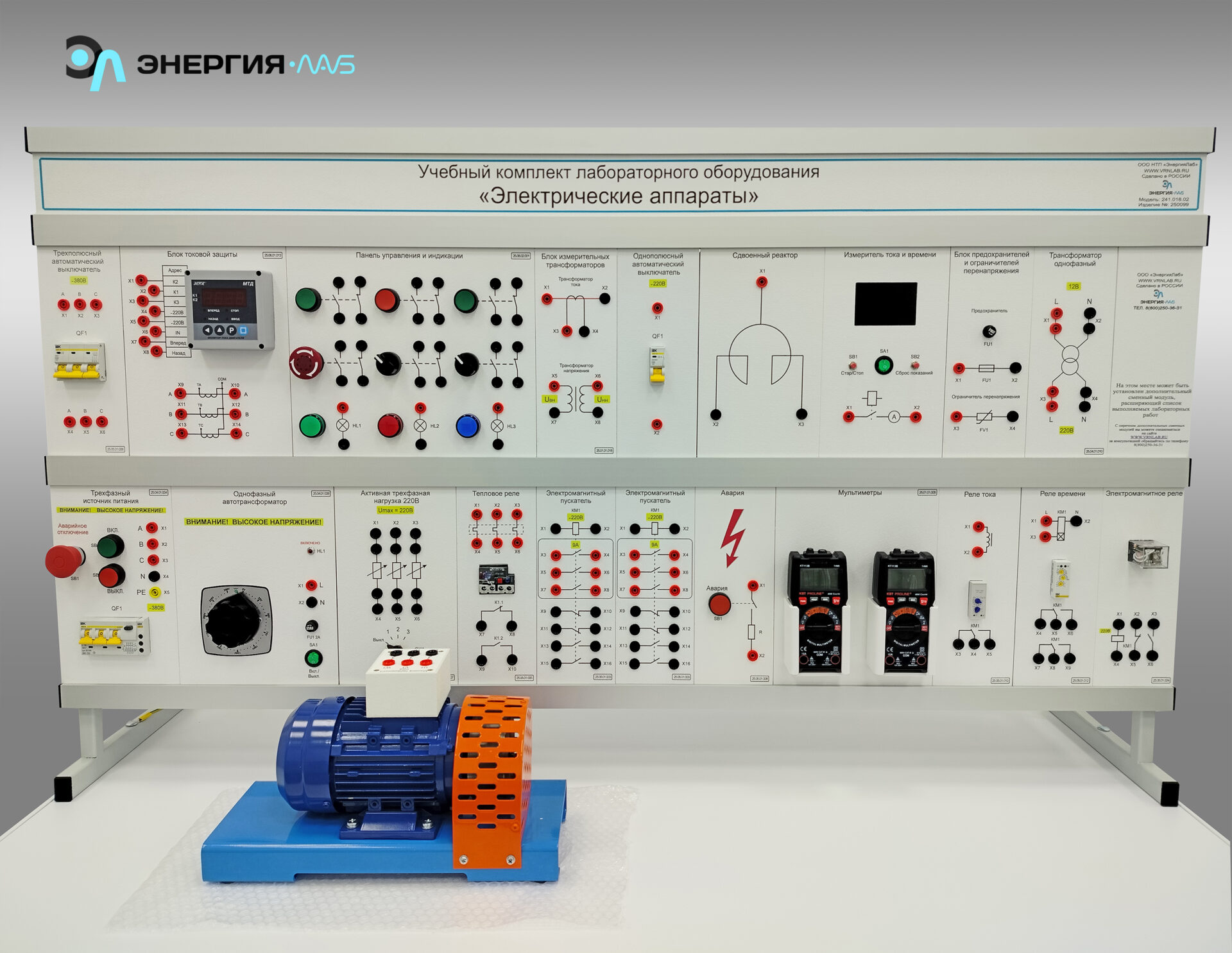Комплект учебного оборудования «Электрические аппараты» предназначен для проведения лабораторно-практических занятий в высших и средних профессиональных образовательных учреждениях, для получения базовых и углубленных профессиональных знаний и навыков. Стенд позволяет проводить лабораторные работы по темам "Аппараты управления" и "Аппараты распределительных устройств".
