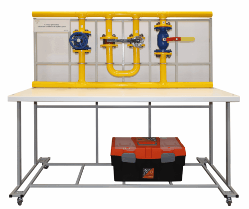 Стенд – тренажер «Монтаж элементов арматуры» предназначен для проведения лабораторно-практических занятий в высших и средних учебных заведениях для студентов, обучающихся по специальности «Нефтегазовое дело», «Монтаж и эксплуатация оборудования и систем газоснабжения».
