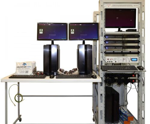 Учебный стенд представляет собой универсальный учебный стенд по исследованию инфокоммуникационных сетей и содержит коммутационную стойку с установленным сетевым оборудованием, ПЭВМ (ноутбук) в комплекте (учебные рабочие места) и комплект коммутационных патч-кордов.