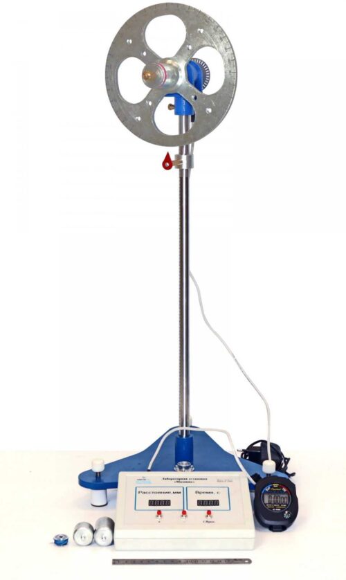 Лабораторная установка предназначена для изучения правил определения момента инерции маховика при его вращательном движении экспериментальным методом двумя способами, определения ускорения поступательного движения груза, изучения устройства и принципа работы маятника типа «Маховик».
