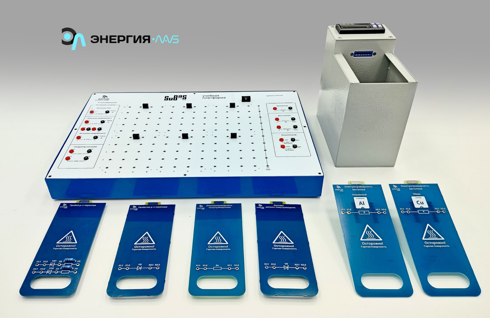 Сменные минимодули предназначены для работы совместно с учебной базовой платформой SuBaS, со встроенными источниками сигналов и измерительными приборами, вставляются в гнёзда для сборки объекта исследования. Макетирование осуществляется с применением соединительных элементов, без пайки.