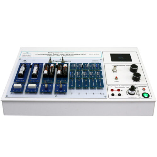 Учебная лабораторная установка «Исследование характеристик источников ЭДС. Законы Ома и Кирхгофа» предназначена для исследования характеристик источника ЭДС (ЭДС, внутреннего сопротивления) и экспериментальной проверки законов Ома и Кирхгофа для разветвленных цепей.