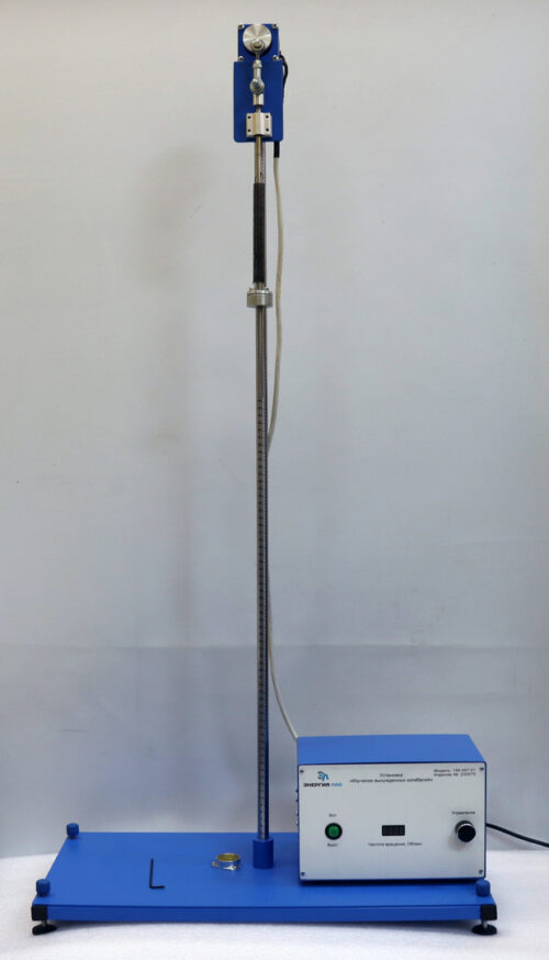 На основании установлена стойка с сантиметровой шкалой. В верхней части стойки на кронштейне закреплен электродвигатель. Регулировка оборотов двигателя осуществляется с блока управления.