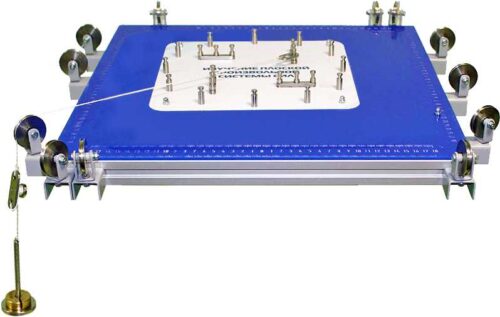 Лабораторный стенд выполнен в настольном варианте и состоит из основания и рамы из конструкционного профиля. По периметру рамы установлены блоки системы нагружения. Блоки могут смещаться по раме на необходимое расстояние.