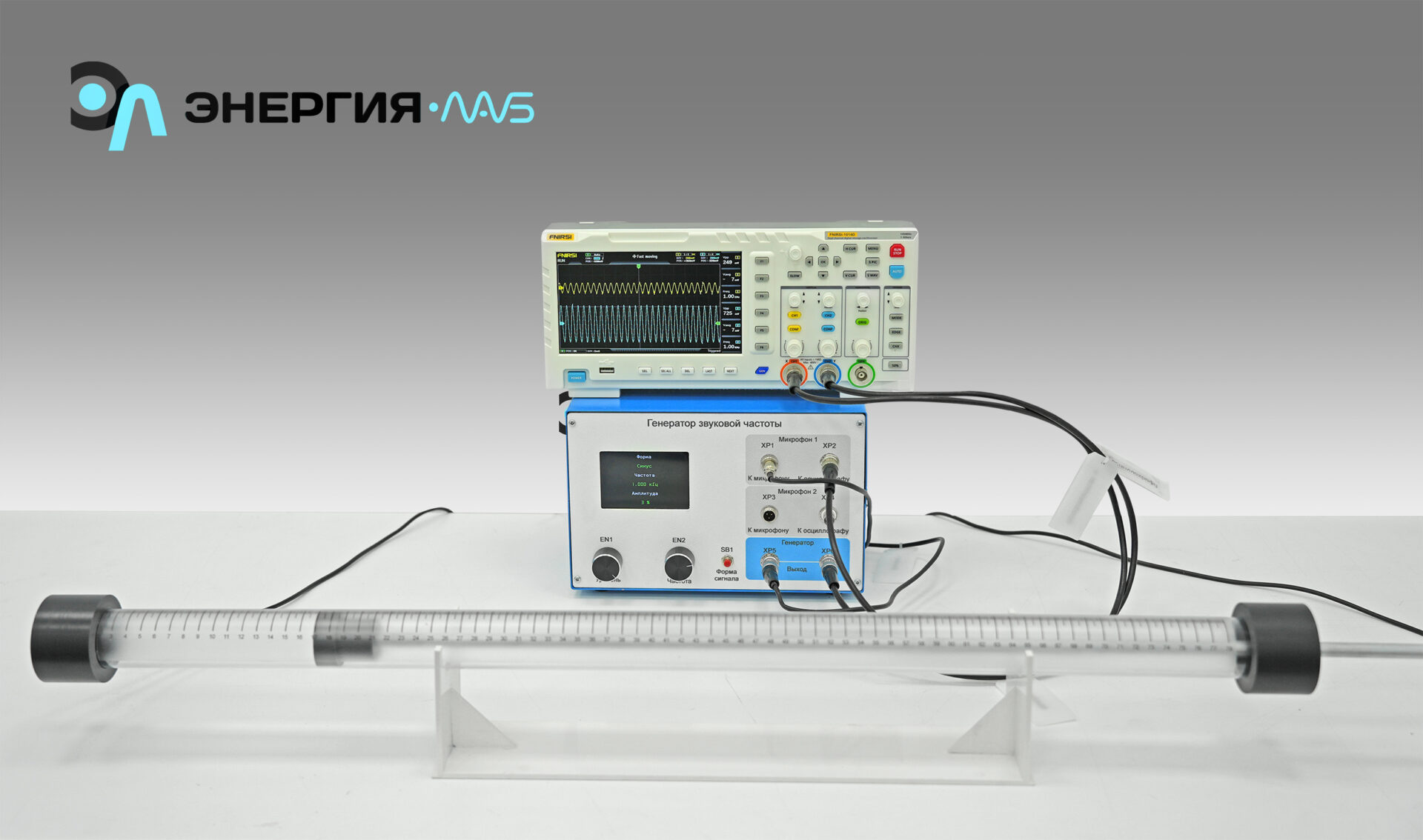Лабораторная установка предназначена для проведения лабораторной работы для определения скорости звука в воздухе методом стоячей волны с использованием поршня.