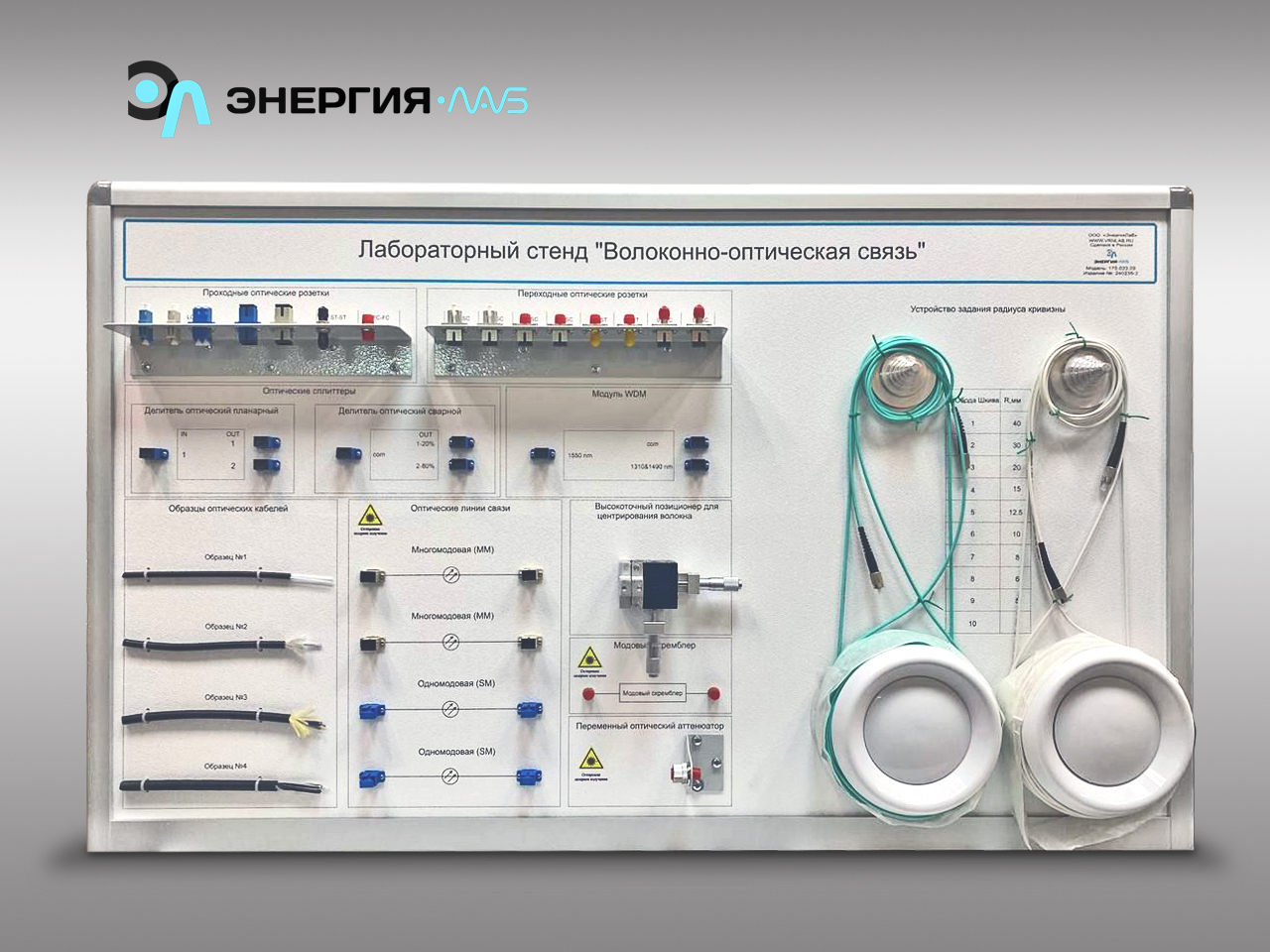Лабораторный стенд «Волоконно-оптическая связь» представляет собой комплексное настольное оборудование, предназначенное для глубокого практического изучения принципов построения, измерения параметров и диагностики волоконно-оптических линий связи (ВОЛС). Стенд позволяет проводить широкий спектр экспериментов как на одномодовых, так и на многомодовых оптических волокнах, что полностью охватывает базовые технологии современной оптической передачи данных.