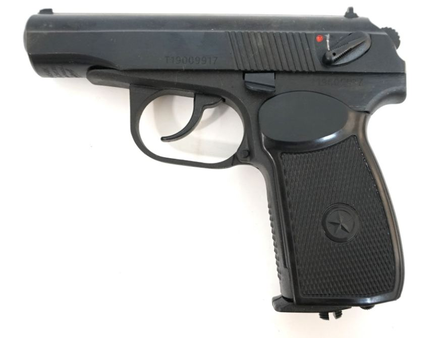 Массогабаритный макет 9 мм пистолета Макарова изготовлен на базе пневматического пистолета Макарова. В пистолет интегрирован лазерный модуль, элементы питания и управляющая электроника.