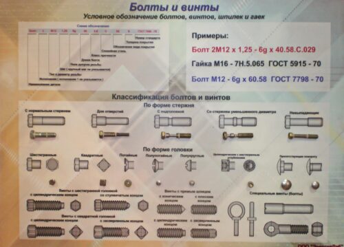 На плакате, также закреплены головки болтов и винтов, а именно: