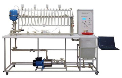 Учебный стенд позволяет исследовать характеристики трубопроводов: определение потерь напора по длине, коэффициентов сопротивления и трения, потери напора на местном сопротивлении – диафрагме, регулируемой задвижке; изучать характер изменения давления в напорном трубопроводе при гидравлическом ударе (закрытие (полное или неполное) клапана на выходе трубопровода) и при одновременном запирании двух клапанов на входе и на выходе трубопровода. Информационно-измерительная система стенда позволяет: определять давление в различных точках системы и расход воды в системе.