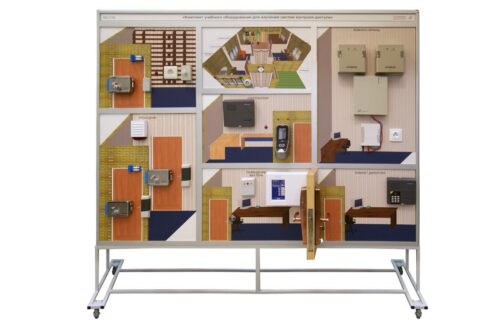 Учебный стенд предназначен для изучение различных систем контроля доступа и выполнено в настольном исполнении и стилизованное под помещение образовательного учреждения (школы).