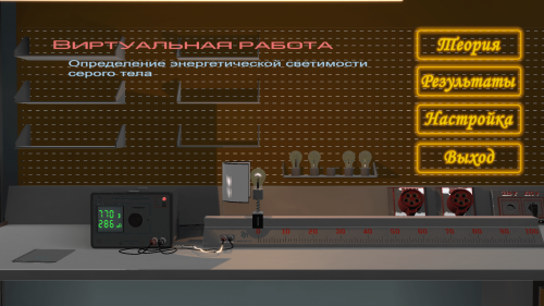 Виртуальная работа «Определение энергетической светимости серого тела» выполняется в программном виртуальном продукте и предназначен для интерактивного выполнения лабораторной работы.