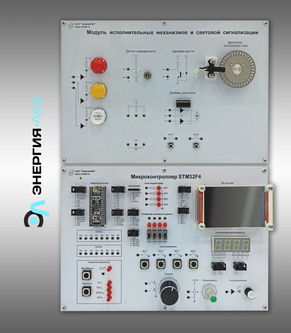 Комплект поставляется с подробным руководством по эксплуатации и методическими указаниями для выполнения 6 лабораторных работ, что делает его готовым к использованию в учебном процессе.