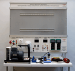 Комплект лабораторного оборудования «Электромонтаж и наладка электрических цепей, автоматики и электромоторов» выполнен в стендовом исполнении: стойка с модулями и монтажной панелью, установленная на собственном лабораторном столе.
