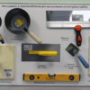 Количество макетов - 4 шт. - Планшет с инструментом и приспособлениями для выполнения штукатурных работ, предназначенных для демонстрации инструментов и приспособлений применяемых при выполнении штукатурных работ.